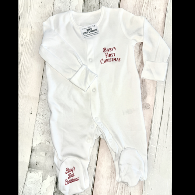 These adorable Baby’s First Christmas 2025 babygrows are the perfect way to celebrate your little one’s first festive season. Made from soft, comfortable white cotton with easy popper fastenings, and printed with a bright red Christmas design on the back, chest and feet, they're ideal for holiday photos, Christmas morning, or as a thoughtful gift for new parents creating special memories.