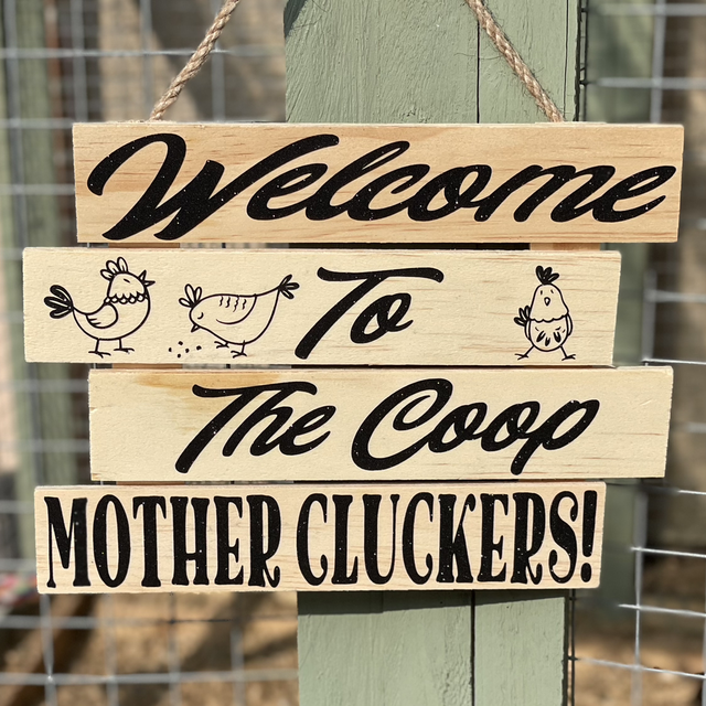 “Welcome to the Coop Mother Cluckers!” Wooden Sign